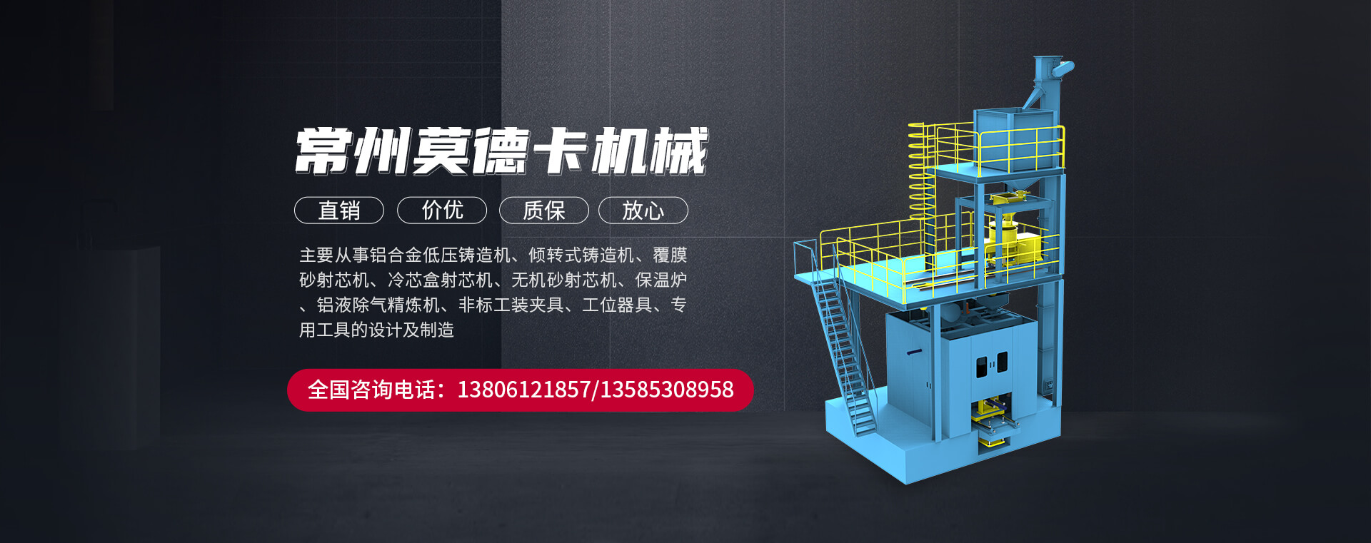 常州莫德卡機(jī)械有限公司坐落于經(jīng)濟(jì)發(fā)達(dá)的長(zhǎng)三角地區(qū)--江蘇省常州市新北區(qū)高新技術(shù)開(kāi)發(fā)區(qū)。公司主要從事鋁合金低壓鑄造機(jī)、傾轉(zhuǎn)式鑄造機(jī)、覆膜砂射芯機(jī)、冷芯盒射芯機(jī)、無(wú)機(jī)砂射芯機(jī)、保溫爐、鋁液除氣精煉機(jī)、非標(biāo)工裝夾具、工位器具、專用工具的設(shè)計(jì)及制造。公司成立于2015年5月,注冊(cè)資本500萬(wàn)元,員工50多人,技術(shù)人在鋁合金和黑色鑄造產(chǎn)品開(kāi)發(fā)方面具有深入的理論研究和豐富的汽車零部件制造經(jīng)驗(yàn),集工廠規(guī)劃、工藝...